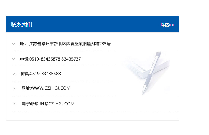 傳真:0519-83435688    郵編:213135    網址:WWW.czjhgj_com.bjbswyys.com    電子郵箱:JH@czjhgj_com.bjbswyys.com